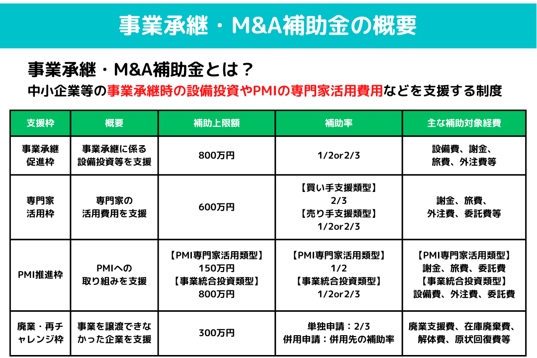 事業承継・M&A補助金の支援枠一覧