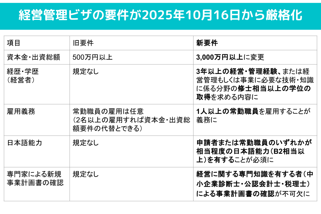 【2025年10月16日施行】経営管理ビザが厳格化 要件の変更点を解説