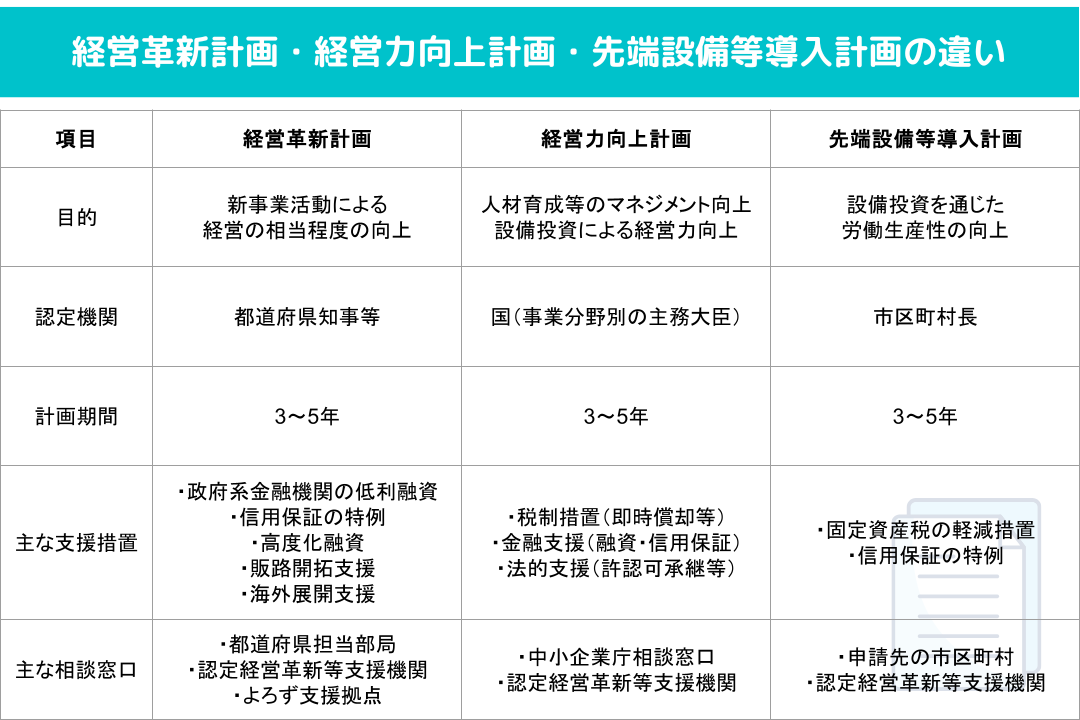 【初心者向け】経営革新計画・経営力向上計画・先端設備等導入計画の3つの違いをわかりやすく解説