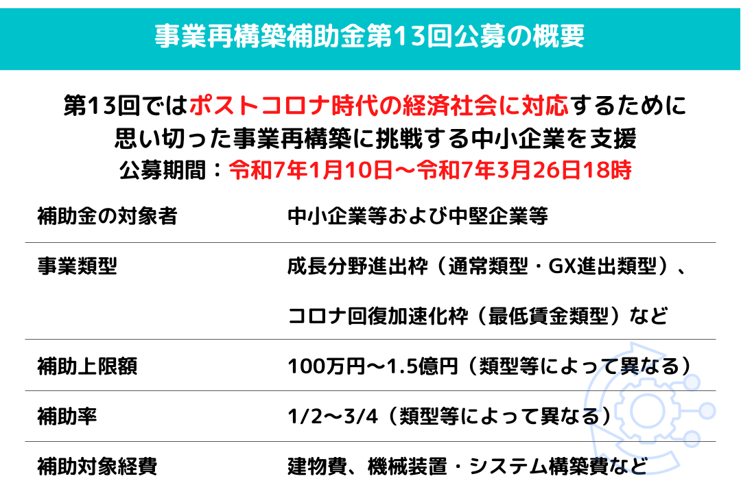 【最新情報】令和7年1月スタートの事業再構築補助金第13回公募を徹底解説!申請要件や流れ、採択率アップのポイント