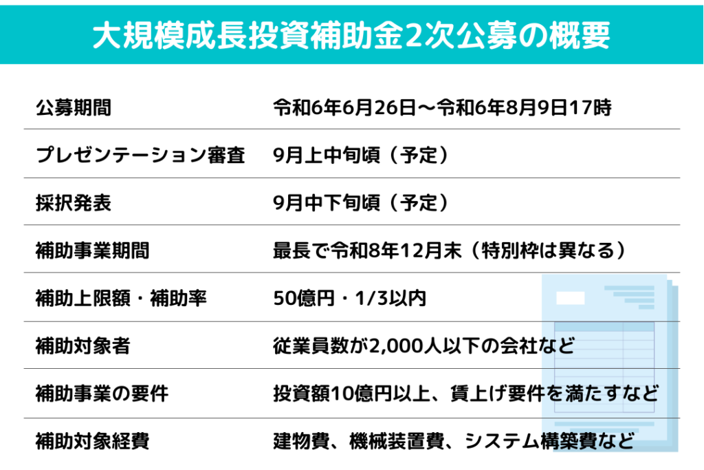 【最新情報】大規模成長投資補助金2次公募の概要