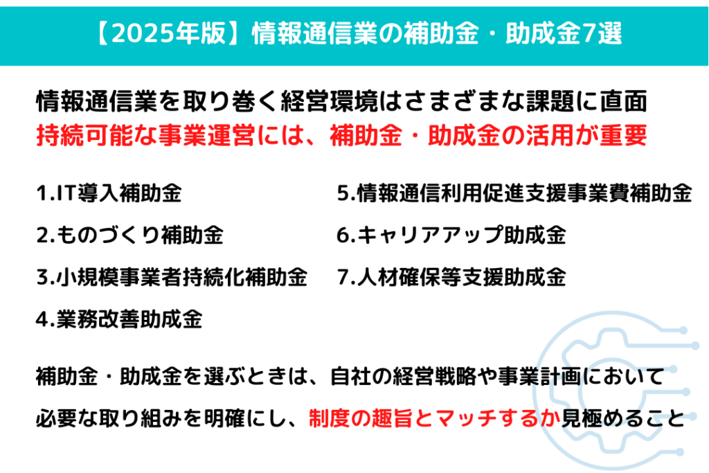 【2025年最新】情報通信業向け補助金・助成金7選丨申請時のポイントも解説