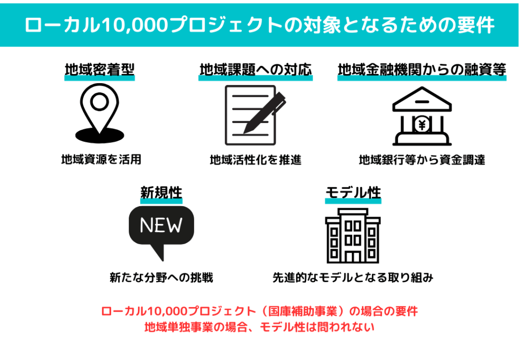 ローカル10,000プロジェクトの対象となるためには、以下の5つの要件をすべて満たす必要があります。
