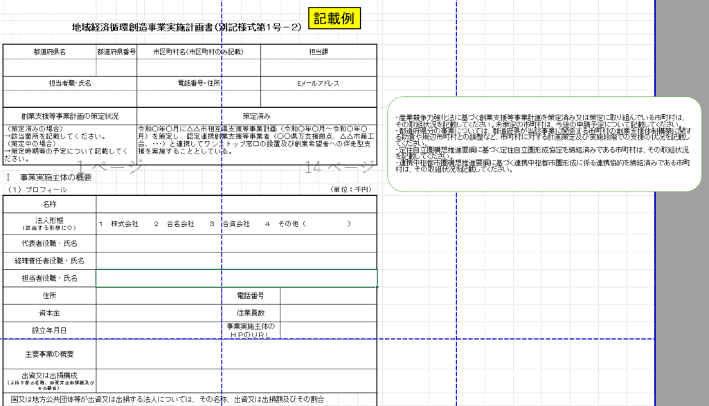地域経済循環創造事業実施計画書の様式は、下記サイトでダウンロードできます。記載例もありますので、参考にしてみましょう。