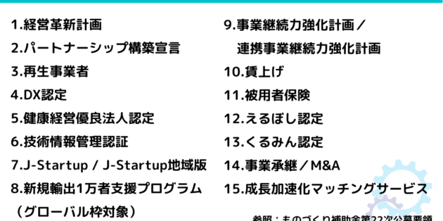 【2025年11月最新】ものづくり補助金の15の加点項目一覧