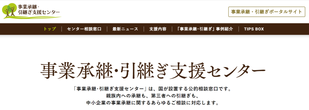 各都道府県に事業引継ぎ支援センターが存在しており、主に後継者不足の問題解決を中心に相談を受け付けております。