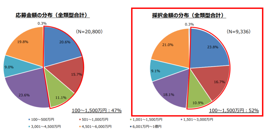 令和3年9月に発表された第2回公募の結果では、全応募20,800件に対して9,336件が採択されました。45%の採択率となります。