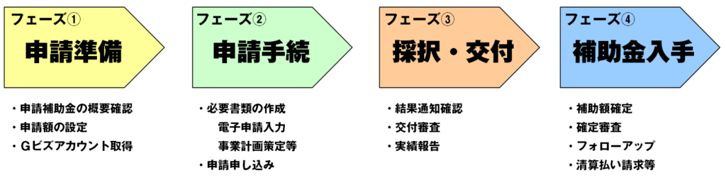 申請の準備段階から補助金の概要を調査したり、Gビズのアカウントの取得したり等、結構手間がかかってしまいそうですよね。