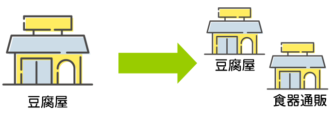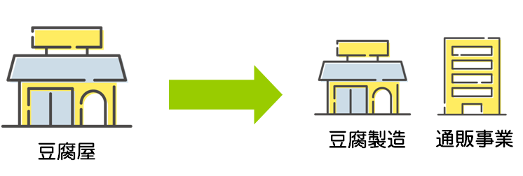 【例】店舗への来客数の減少に伴い、売上が減少。生の豆腐だけではなく、保存出来るように加工した商品をインターネット通販を主軸に販売していく。