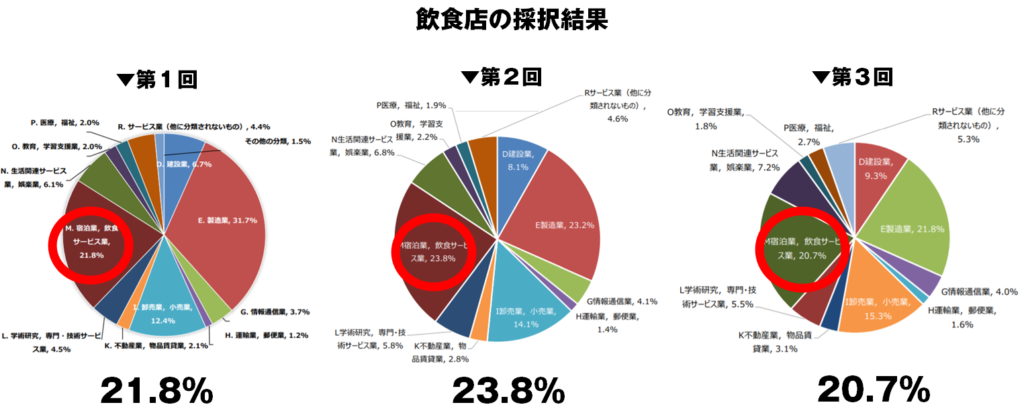 飲食店の採択率は全体の20%以上を占めており、非常に高い採択結果となっています。