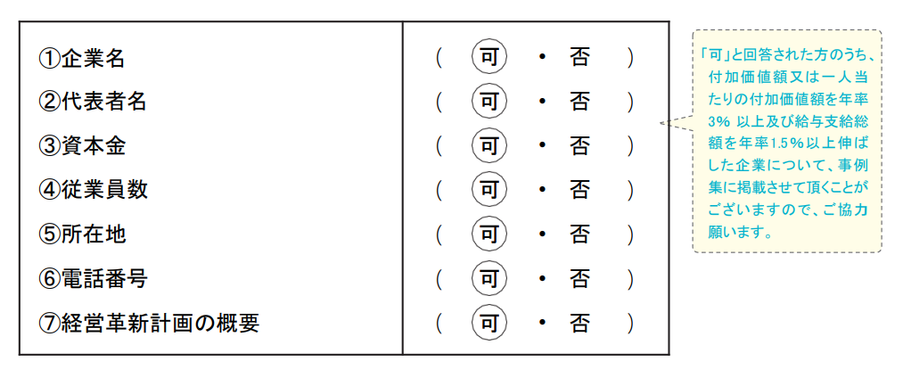 | (別表7)中小企業経営革新事例集の作成に関するお願い | 中小企業経営革新事例集への掲載可否 |